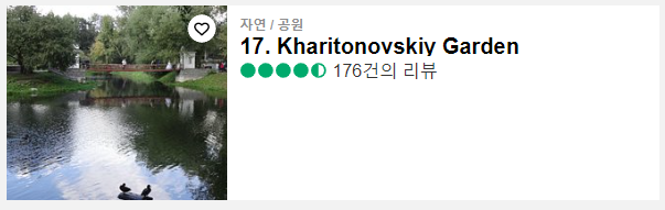 카리토노프스키 공원? 러시아는 이렇게 큰 연못이 있는 산책공간이 꽤나 있는 것 같다.