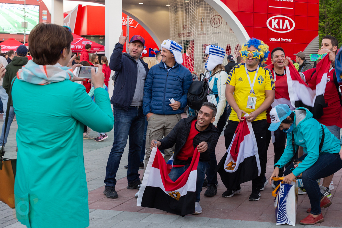 내일의 적이 될 이집트와 우루과이 팬들. 그리고 나의 적이 될 스웨덴 팬. 국제적인 행사는 이런 재미가 있어서 좋다.