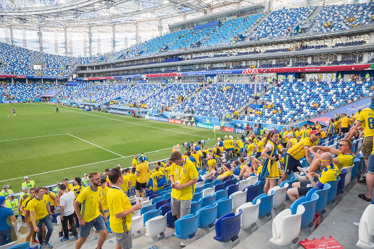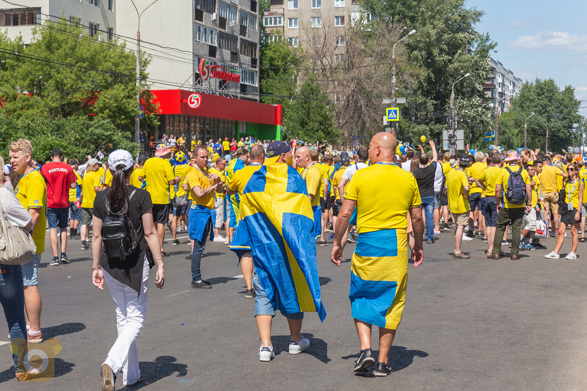 스웨덴팬들은 한블록 옆이라 잘 안보이고 근처는 거의 러시아 현지인들이라 분위기가 잘 표현되지 않는게 아쉽