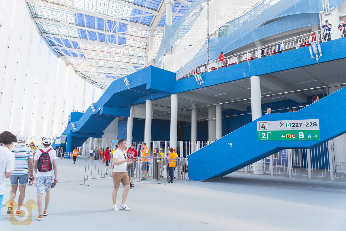 러시아 경기장 특) 강을 끼고 있음. 그리고 강에 경찰이 배타고 빡세게 돌고 있다. 아래 보면 총든 경찰인지 군인도 있음ㄷㄷ