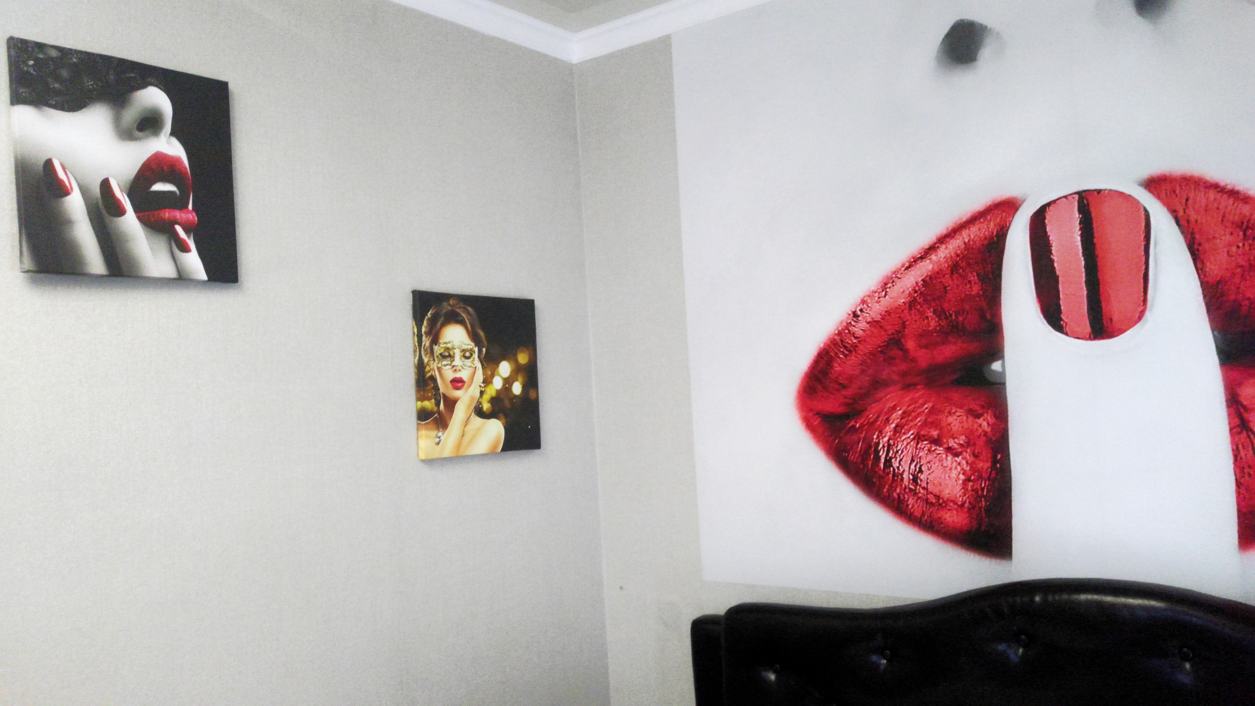 침대 위에 있던 뭔지 모를, 그레이의 50가지 그림자 느낌의 액자들?!